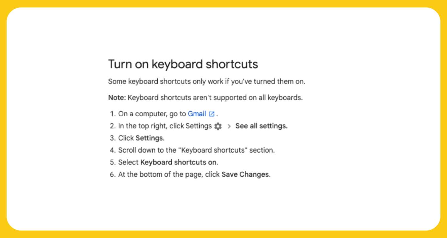 8. Get comfortable with keyboard shortcuts. Turn them on first (see pic below)! Then check out some of the options here to familiarise yourself.