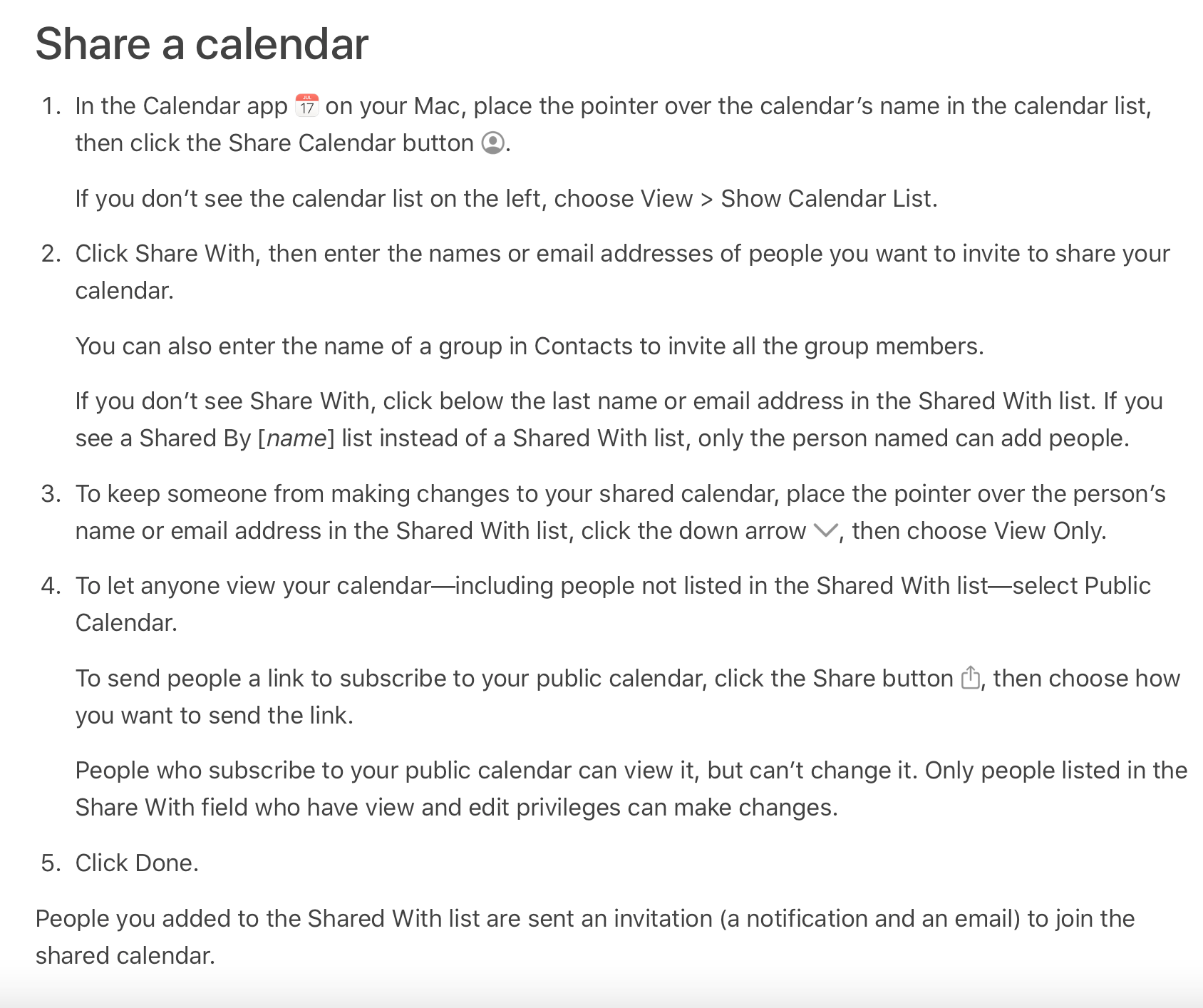 Apple calendar makes it simple to subscribe to other calendars. You’re able to view the calendars that you’re subscribed to, but you can’t edit them.