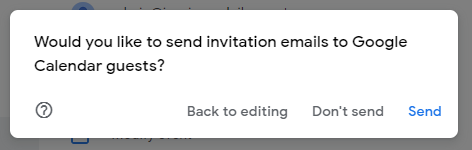 When you’re done adding guests, click save in the upper right of your screen. And a new box will appear asking whether you want to email guests the invitation or not.