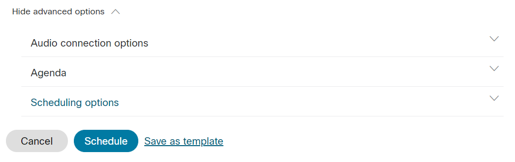 If you’d like to customize your meeting further, select the show advanced options text. This lets you do the following: