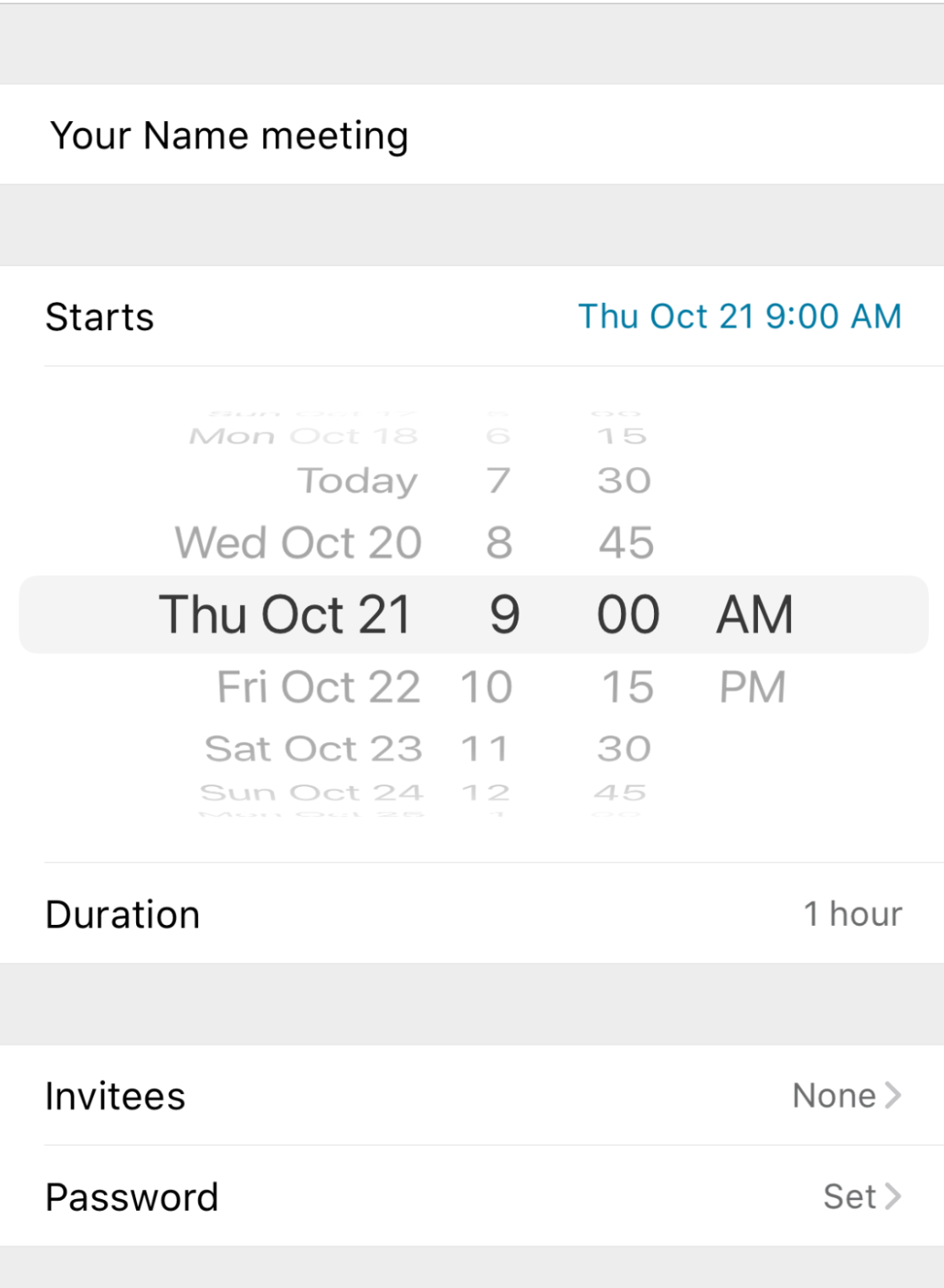 Then, you can choose to either keep the auto-generated meeting password from Webex or set up your own password.