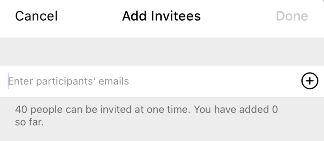 To add participants, click on invitees. Then, a new screen will appear called Add Invitees. Enter the email address(es) for all of your meeting participants.