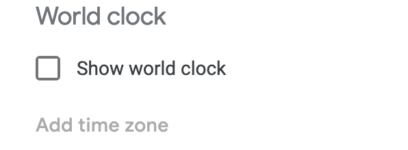 To turn on the world clock: Go to your settings, check the box next to “Show world clock.”