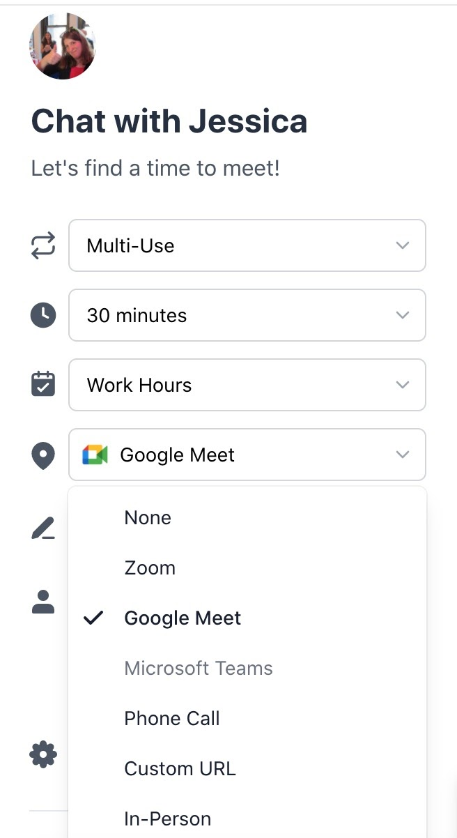 Then, when someone goes to book a time with you, SavvyCal will automatically create a scheduled Google Meet call link.