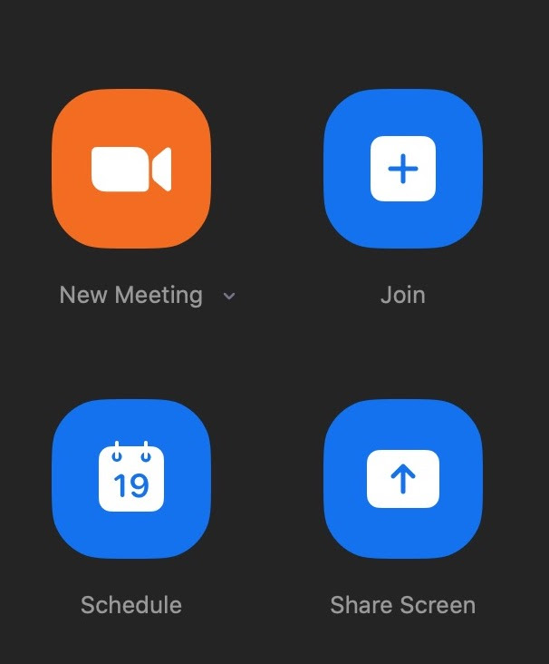 Another way to schedule meetings is through the Zoom desktop app. On the home screen, you’ll see four options: