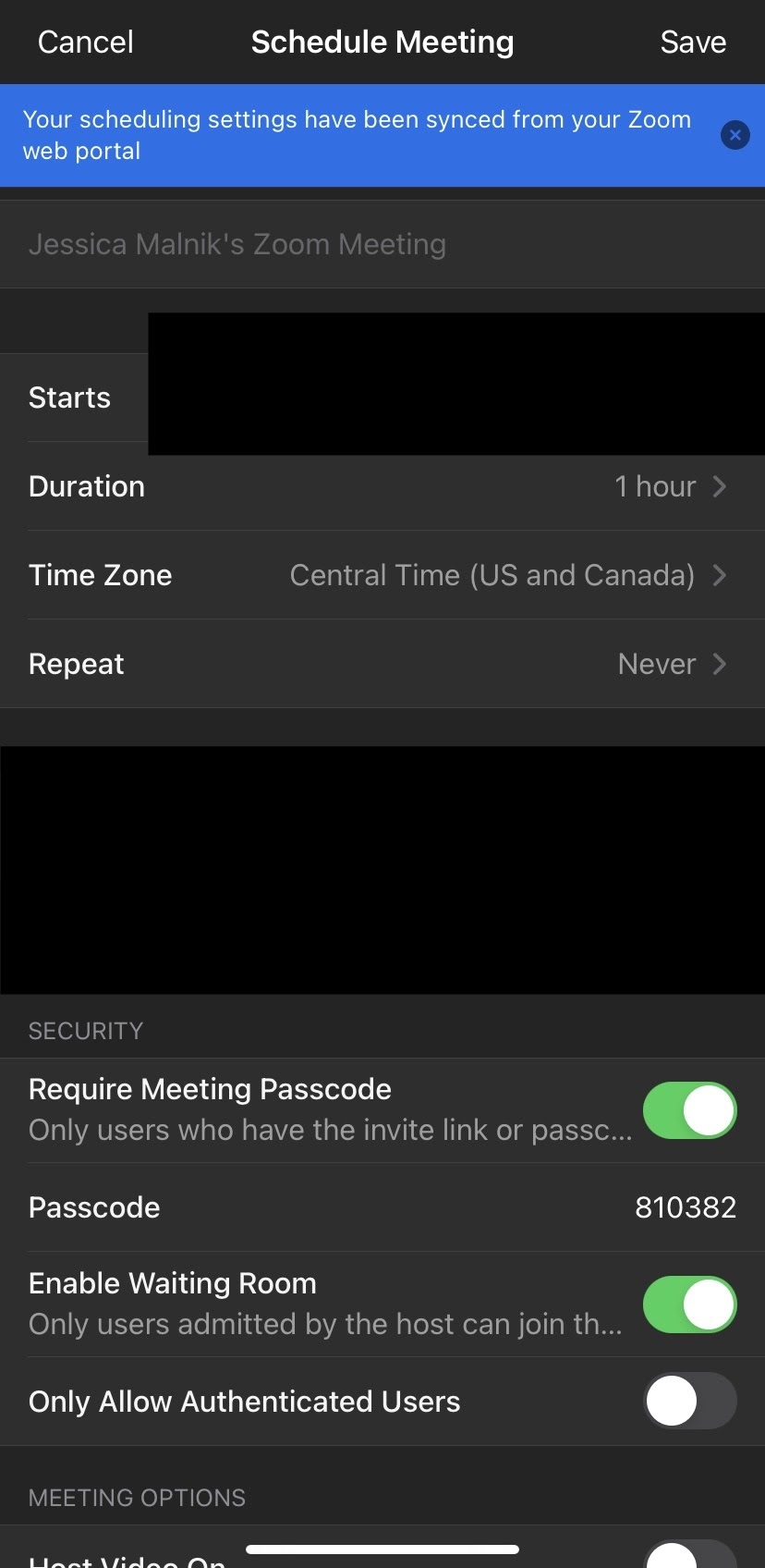 When you click schedule, you’ll see a screen that looks almost identical to the web interface. You can add in all of your meeting details.