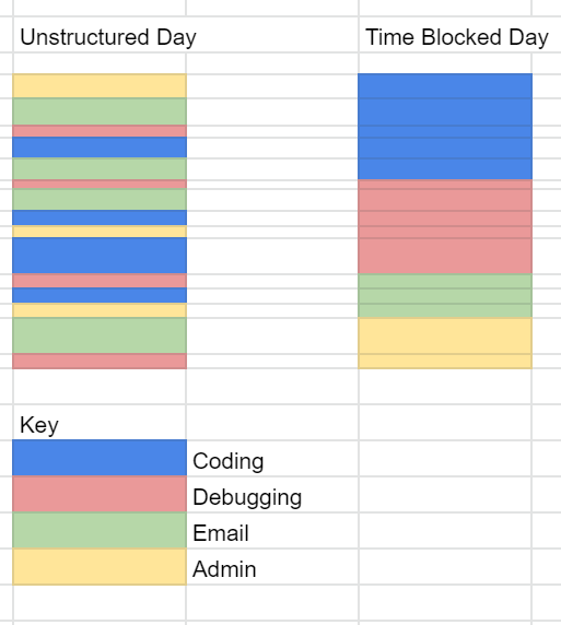 Here’s an illustration of how an unstructured day and a time-blocked one play out.