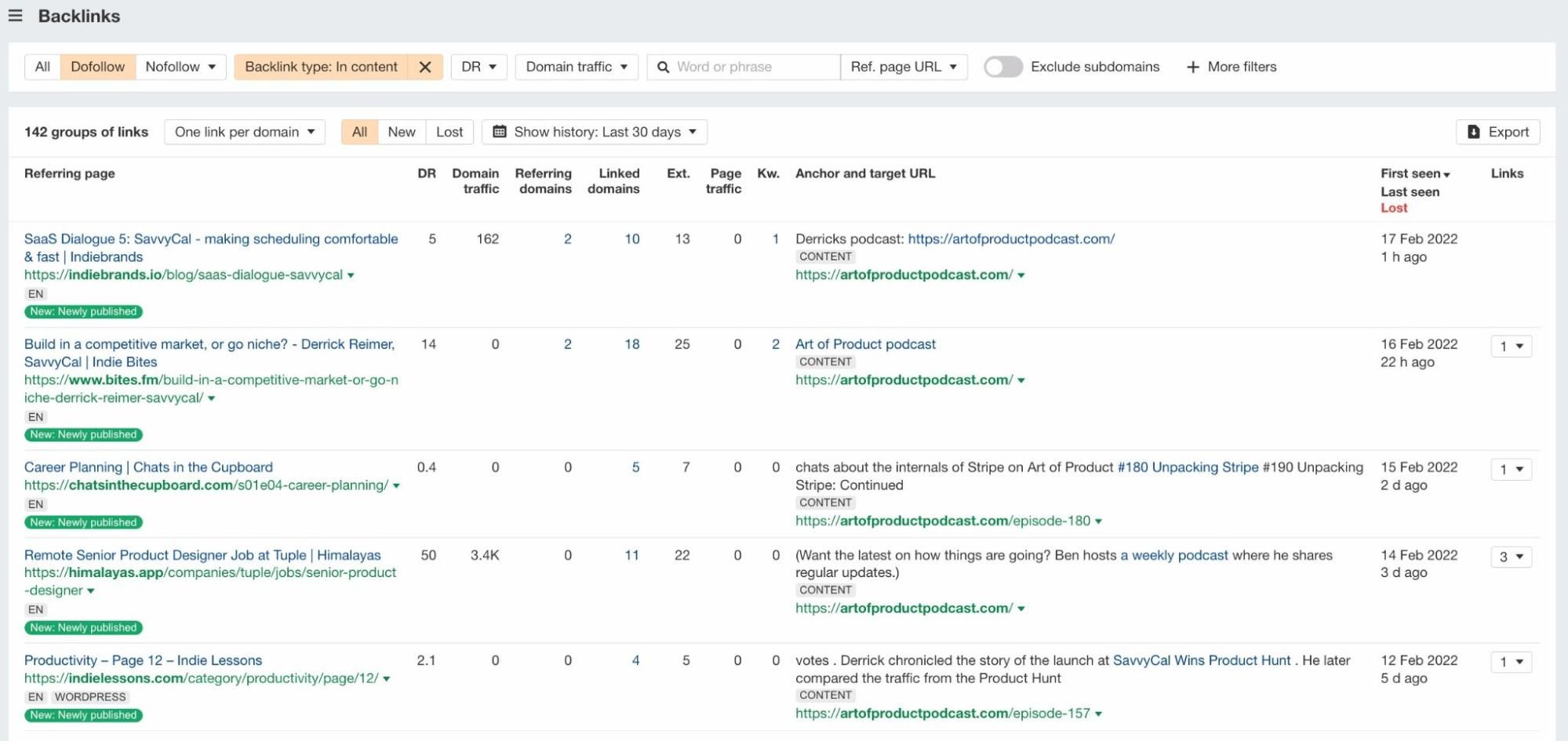 In addition, if you use an SEO keyword research tool, like Ahrefs, SEMrush, or SE Ranking, an underrated tool to find your podcast or other podcasters’ super fans is through the backlinks report.
