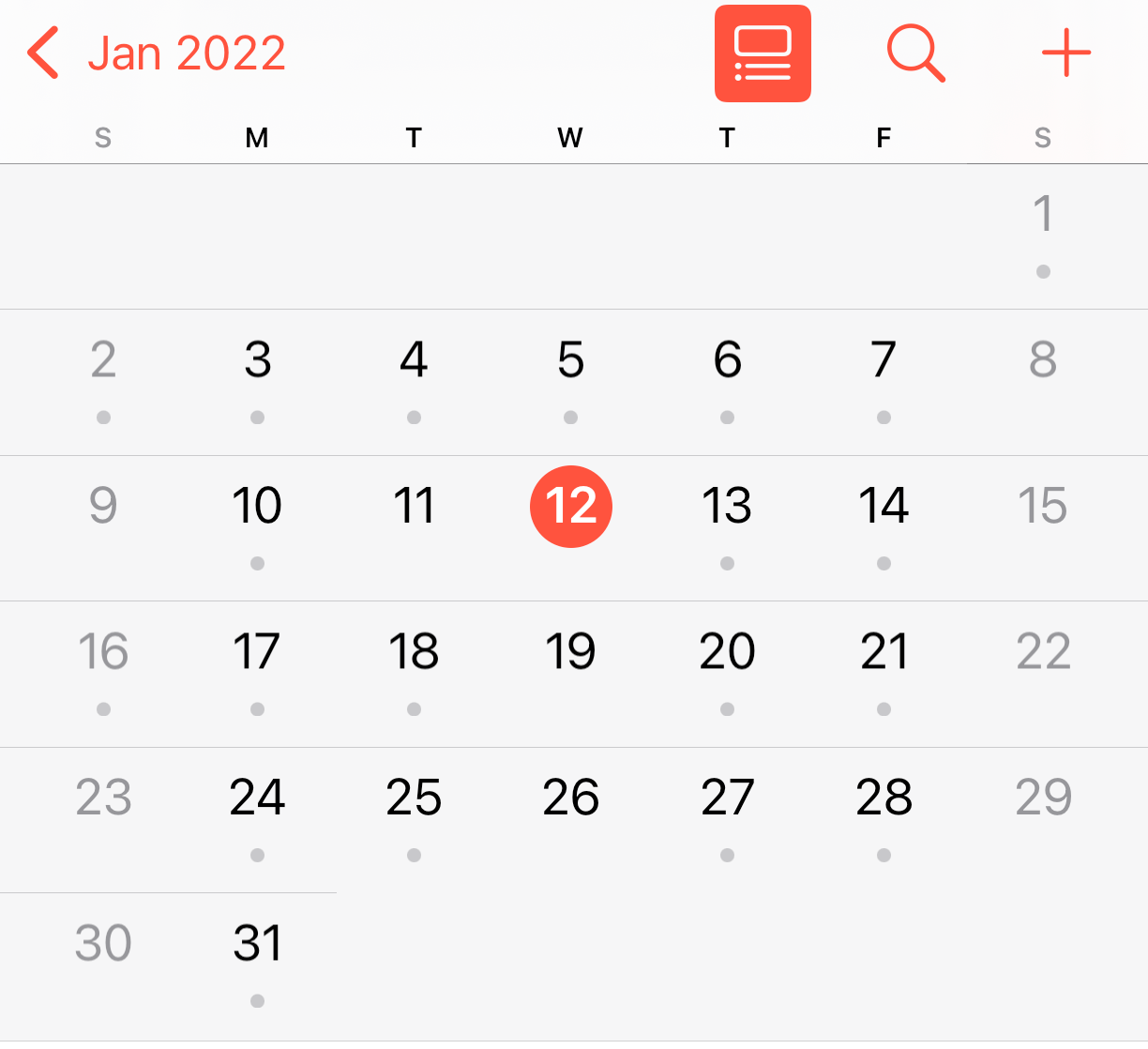 For instance, Apple Calendar also allows you to view either the month or day view. If you view the month, you’ll see a grey dot on the days you have something scheduled. An orange circle will highlight the current day.