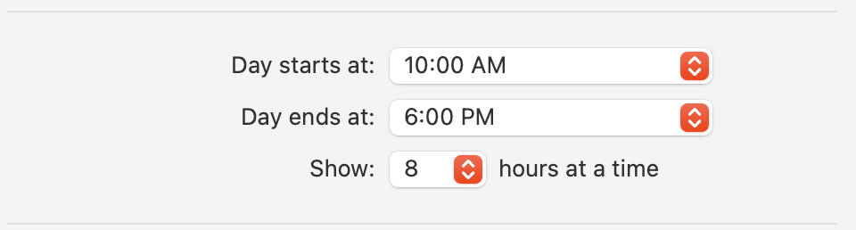 Let’s say you’re customizing your Apple calendar for work. You can set the hours that you’ll be active and available for meetings (again, by navigating through preferences to the general tab).