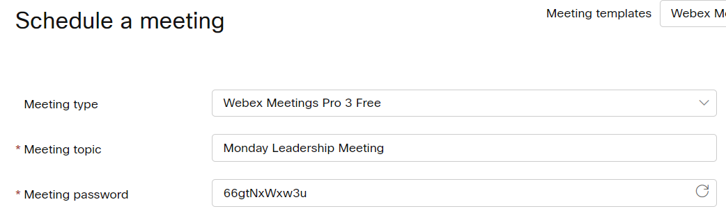 Then, Webex will auto-generate a password for you.