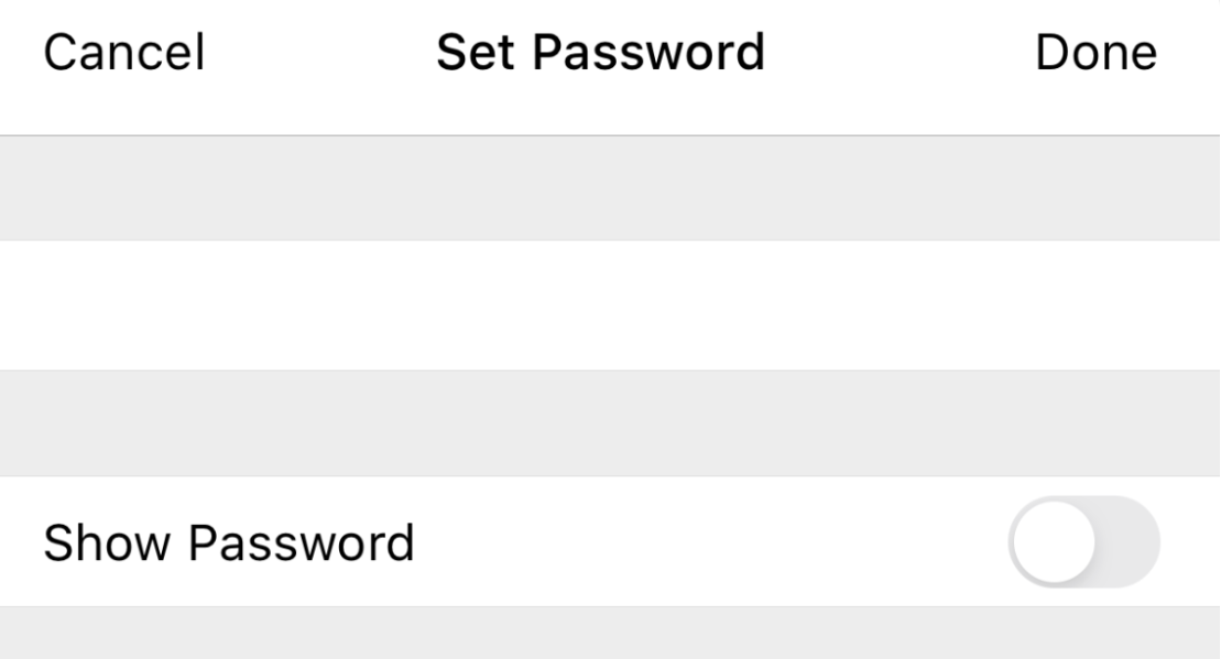 To change it, click the Password section. A new screen called Set Password will appear. You can change the password in the first box (where you see the dots). You can also show the password by sliding the Show Password slider.