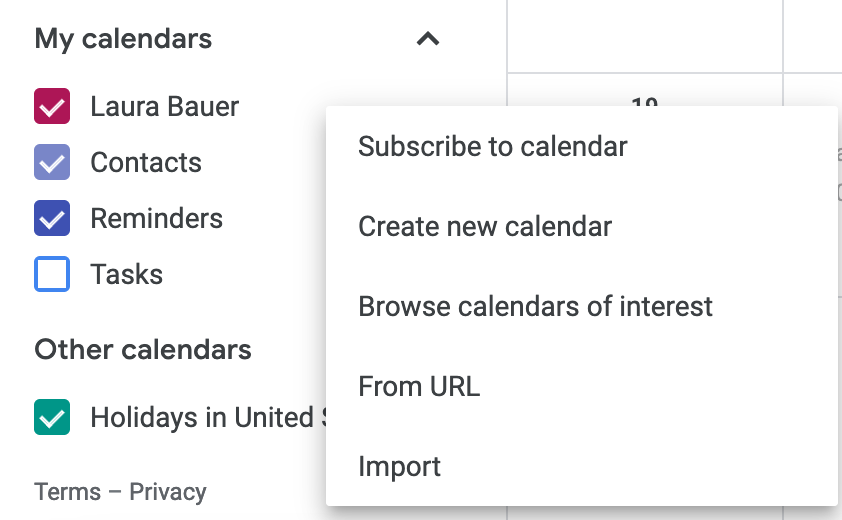 Select from and add calendars for coworkers, family, moon phases, sports teams, and more.