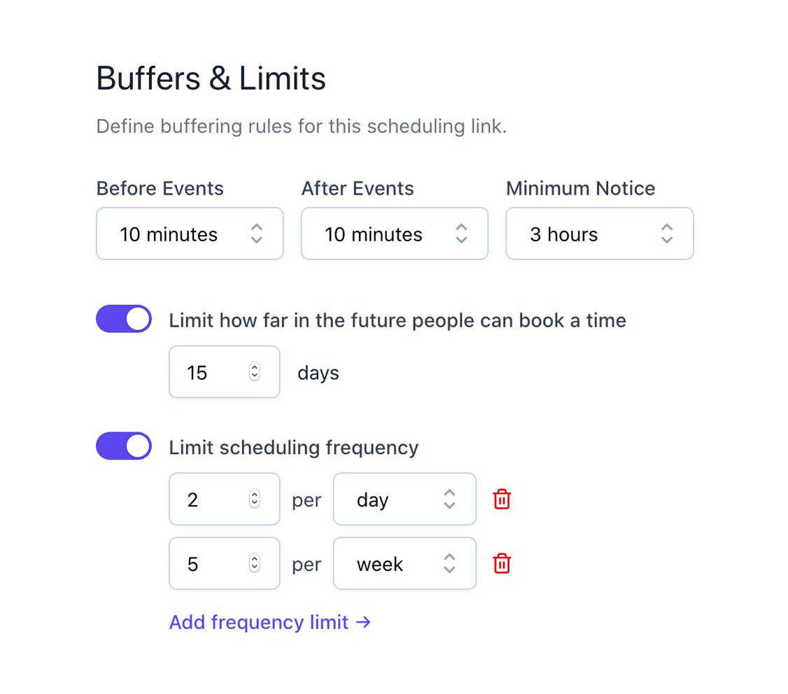 Show your availability in a way that encourages others to pick the best time for you. Similarly, you can limit how much of your time is open for meetings.
