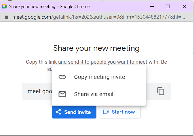 You can either copy and paste the meeting invite URL or share it via email.