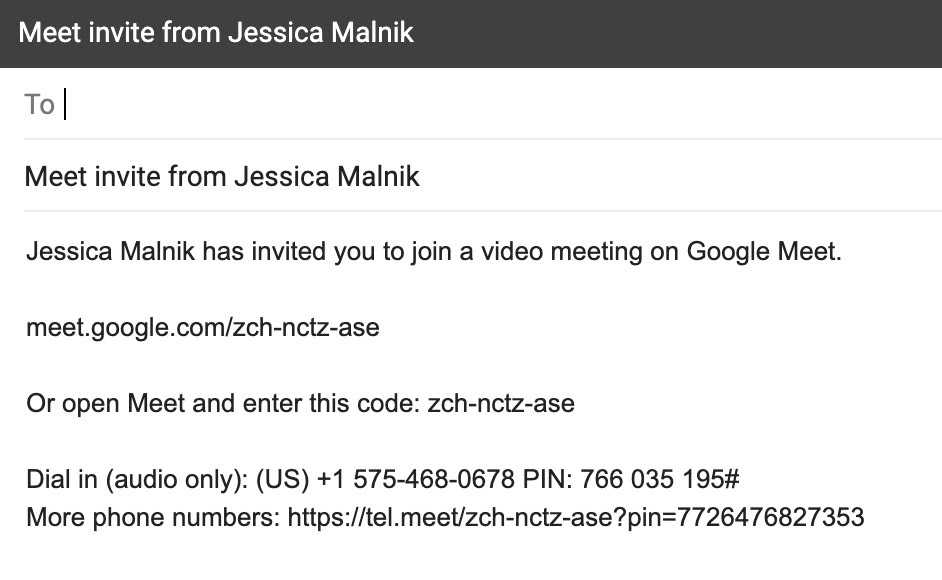 This is what Google Meet’s default email meeting invite looks like.