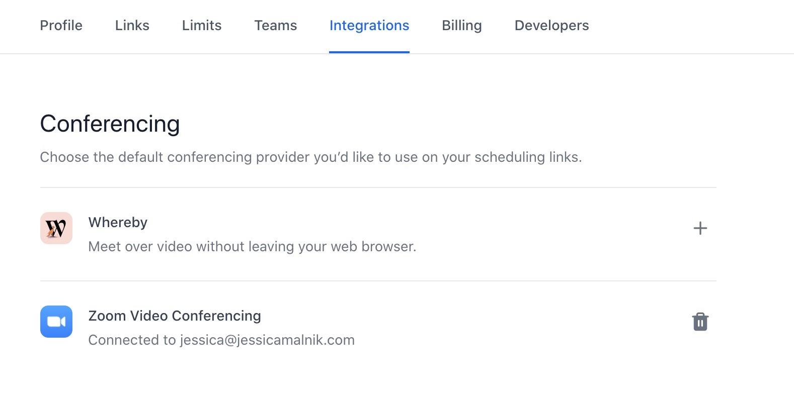 Then, click on integrations and the “+” icon next to Zoom. You’ll be prompted to sign in and authenticate your Zoom account.