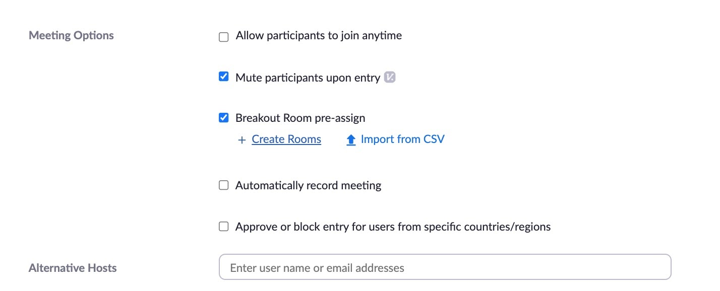 For larger meetings, you can also pre-assign people into smaller breakout rooms in Zoom.