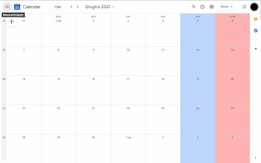 Google Calendar Weekend Highlighter lets you choose two custom colors and two custom days to be colored with those background colors. You can also highlight the weekend in the Day, Week, Month and Custom views on Google Calendar web pages.