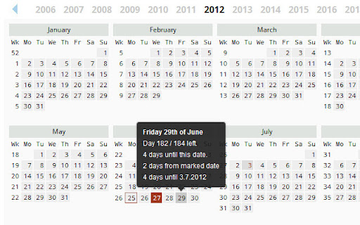 Show an entire year’s calendar and count down to any number of dates you select. Add notes and colors to specific days and check the distance between selected dates.